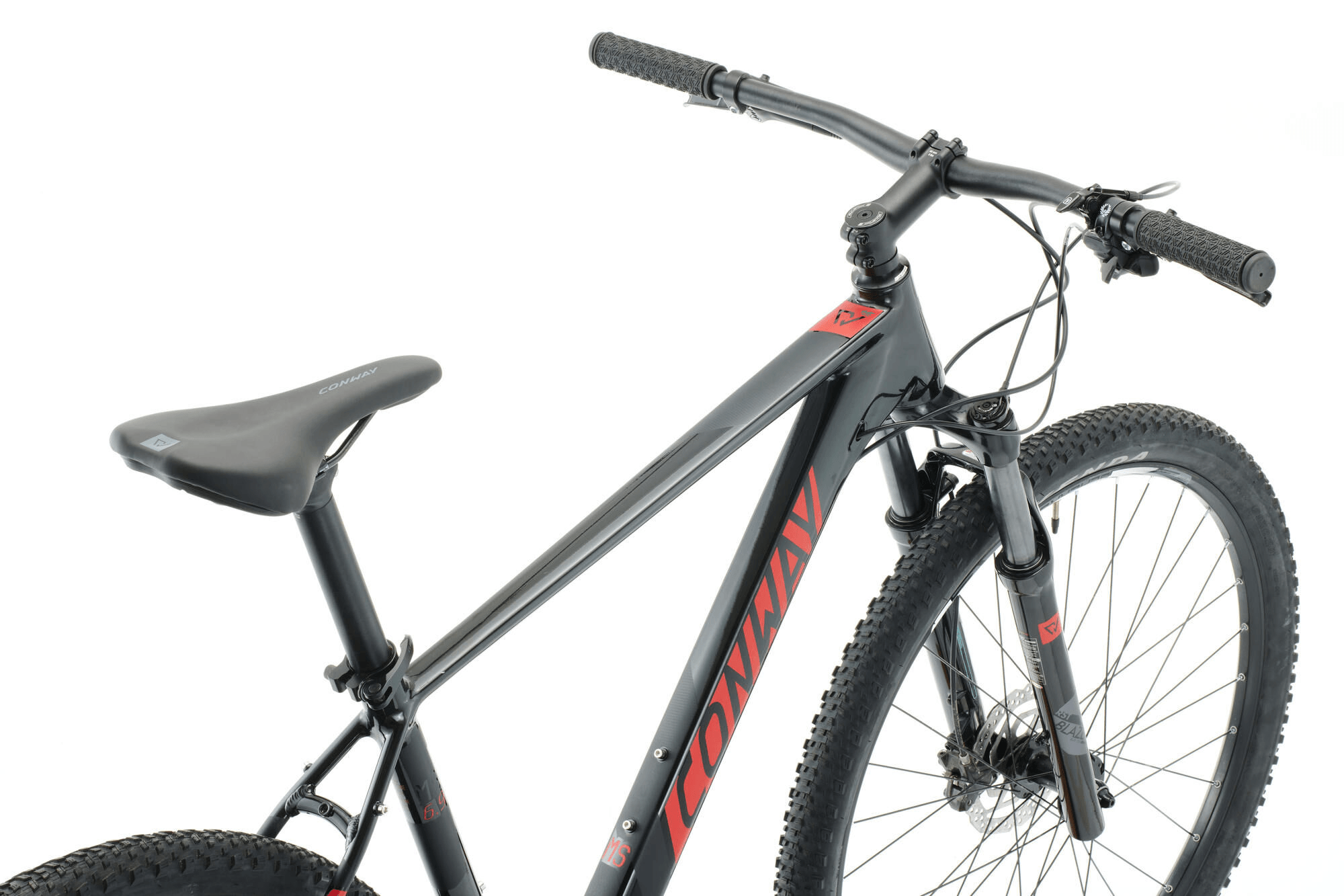Ein zuverlässiger Sport-Partner durch und durch – das CONWAY „MS 6.9“ überzeugt mit seiner ausgewogenen Geometrie und der sportlichen Sitzposition, die man auf ausgiebigen Touren durch’s Grün ganz automatisch einnimmt. Neu ist die SRAM „SX Eagle“ Kettenschaltung, die den Einstieg in SRAMs Welt der 12-fach Antriebe bietet. Außerdem die Reifen: WTBs „Ranger“ 29er Reifen beißen sich mit ihrem Stollenprofil fest in losen Untergrund und glänzen mit hohem Pannenschutz. Die RST „Blaze“ RLO-Gabel sorgt mit ihrem 100 mm Federweg für guten Dämpfungskomfort, wenn es über unbefestigte Wege geht. Im Zusammenspiel mit den kräftigen SHIMANO „BR-MT200“ hydraulischen Scheibenbremsen tragen sie so zum sicheren Handling bei – und das auf allen Strecken, die man auf Touren passiert.