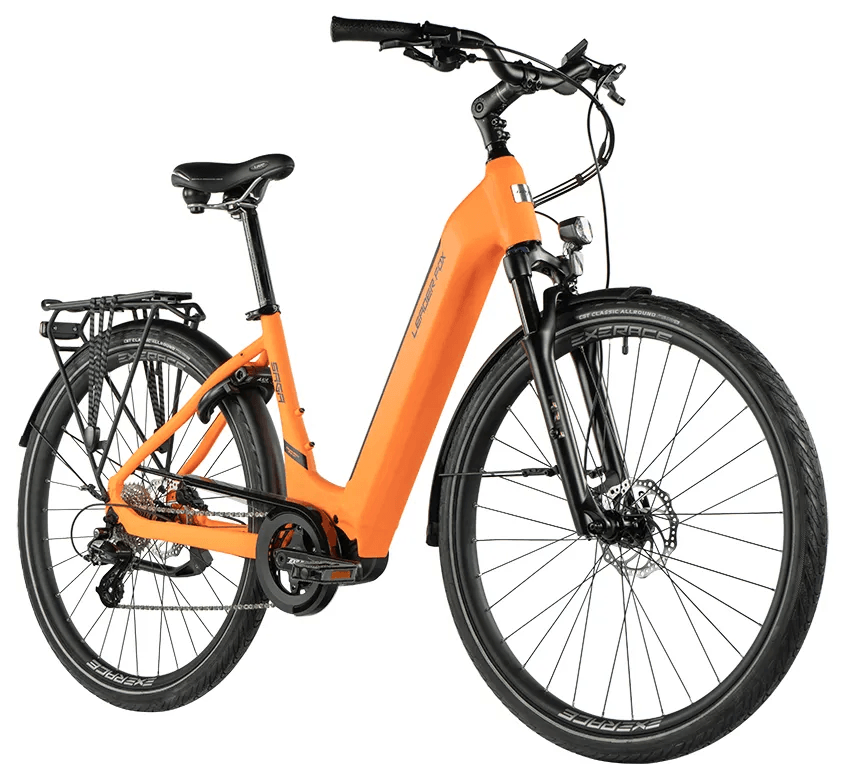 Leader Fox SAGA 28″ City-E-Bike mit Aluminiumrahmen, Federgabel und Scheibenbremsen. Beliebtes City-E-Bike mit guter Erreichbarkeit.